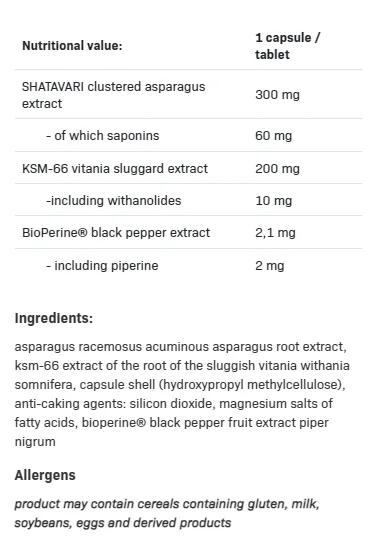 | Variant | Ashwagandha (KSM-66) + Shatavari + Bioperine |